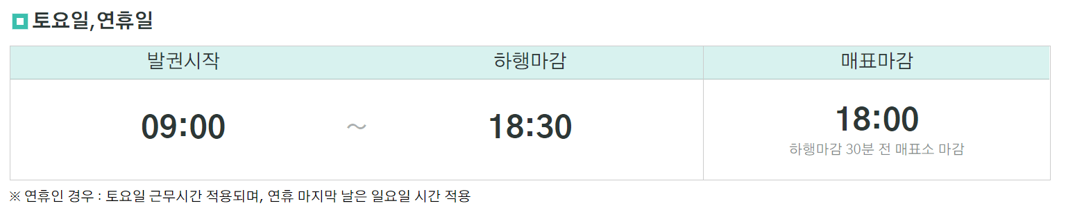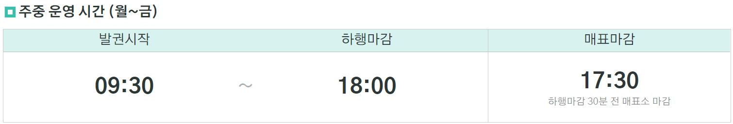 운행은 기상 및 매표 상황에 따라 조기 마감될 수 있으니, 방문 전에 사전에 확인하시기 바랍니다.